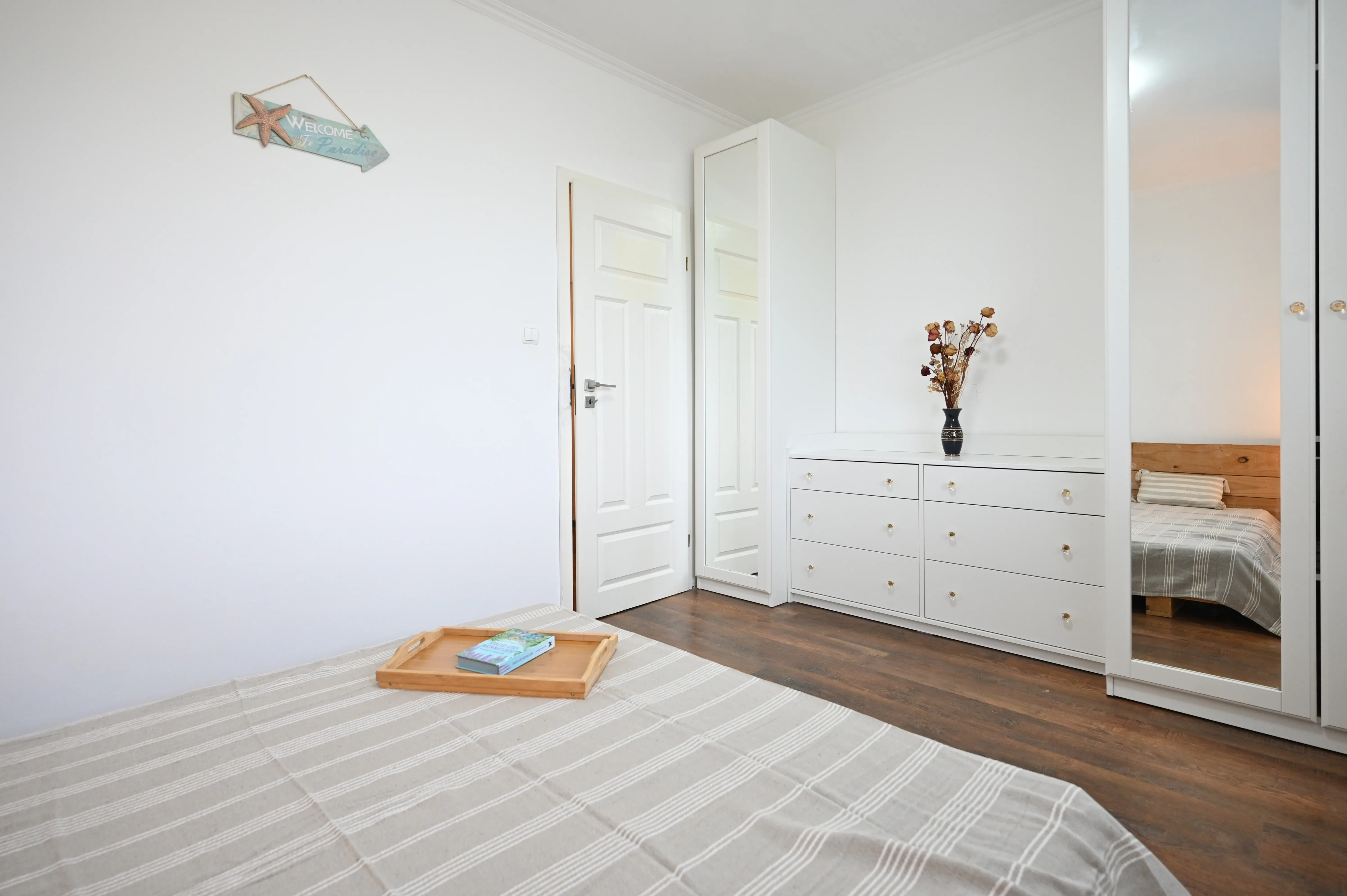 Spálňa je svetlá s priestorom pre veľkú šatníkovú skriňu – komfort, ktorý poteší každého.